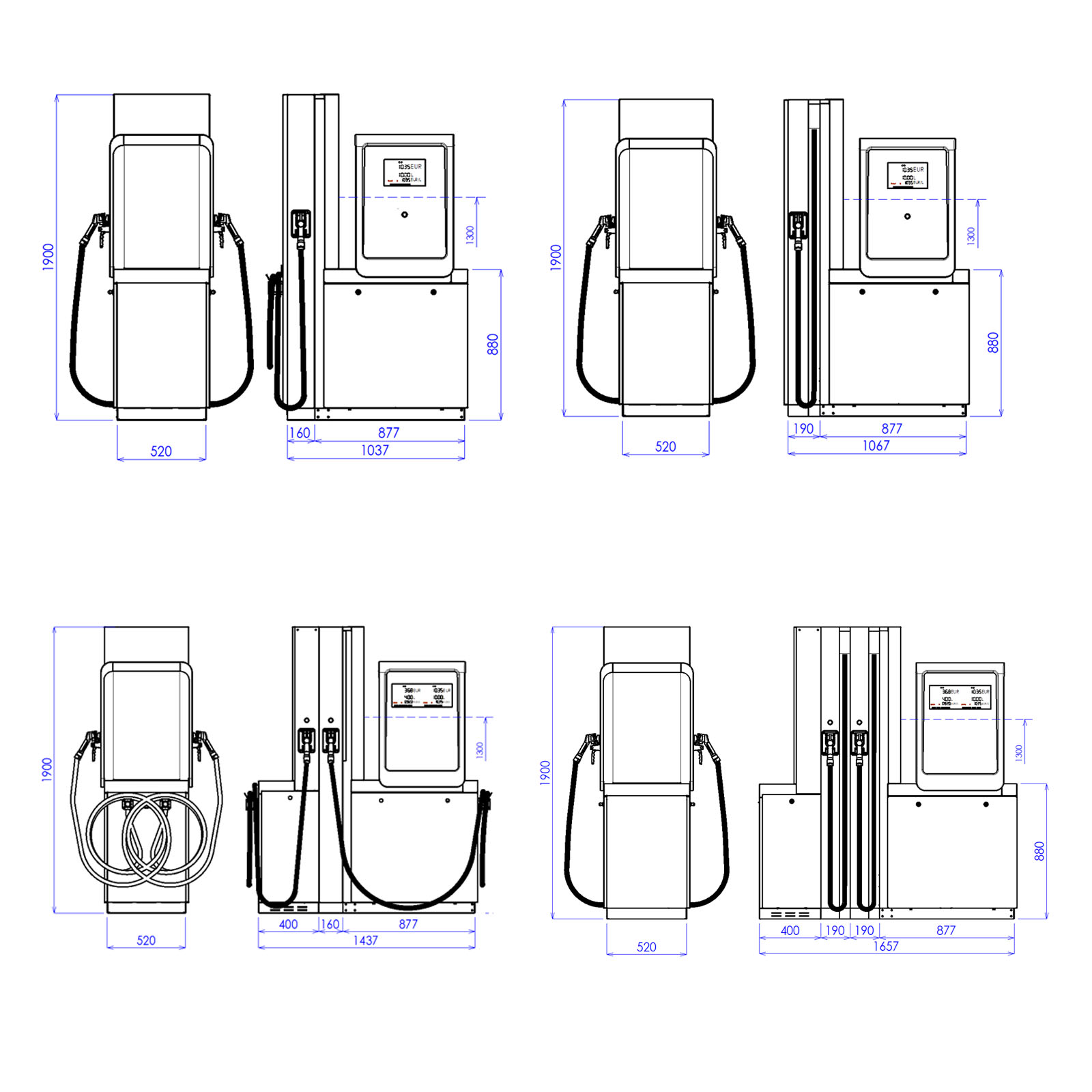 • 2 входи / 2 шланги з незалежними сепараторами для безпечної роботи навіть при великих витратах (до 50 л/хв).Інформаційні LCD дисплеї (7–6,5–5") або мультимедійні екрани з LED-підсвіткою.