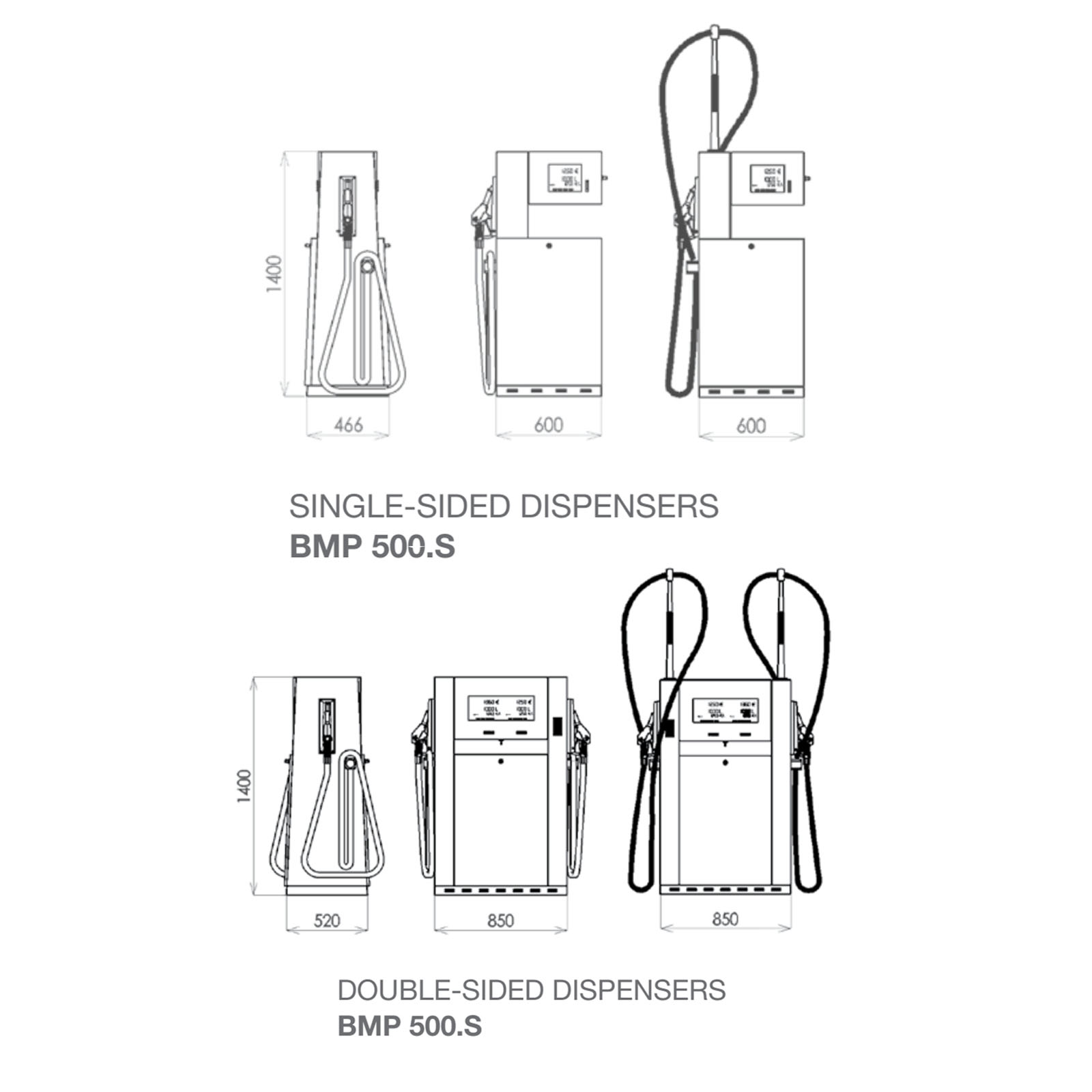 Паливороздавальні колонки TATSUNO BMP 500S розроблені для видачі рідких нафтопродуктів на публічних АЗС і внутрішньовиробничих заправних станціях. Серія представлена двома основними модифікаціями: